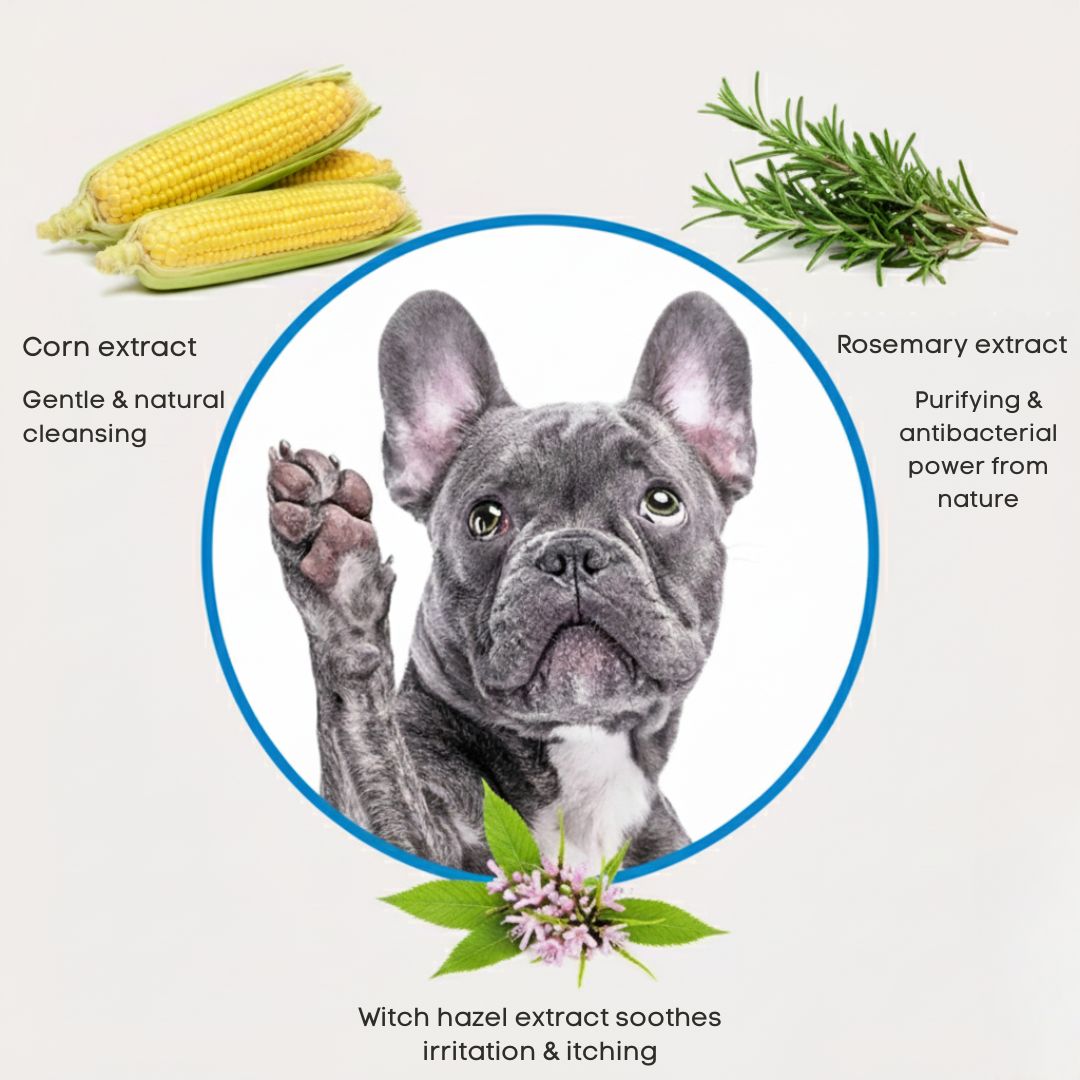 Together they provide a cleaning that both prevents and cares – so your dog avoids discomfort and you don't have to worry about infections.