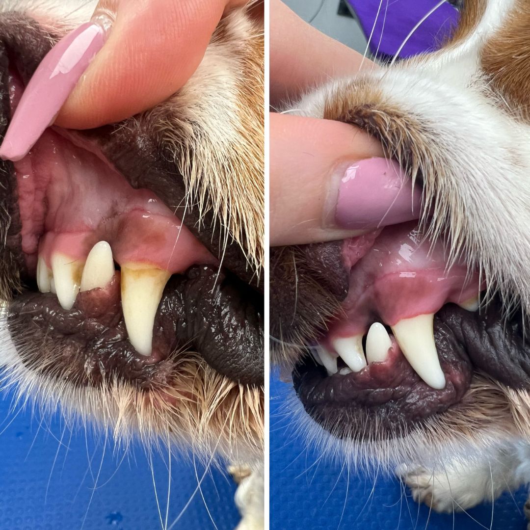Ahora está completamente tranquilo y me deja limpiarle los dientes sin ningún problema.