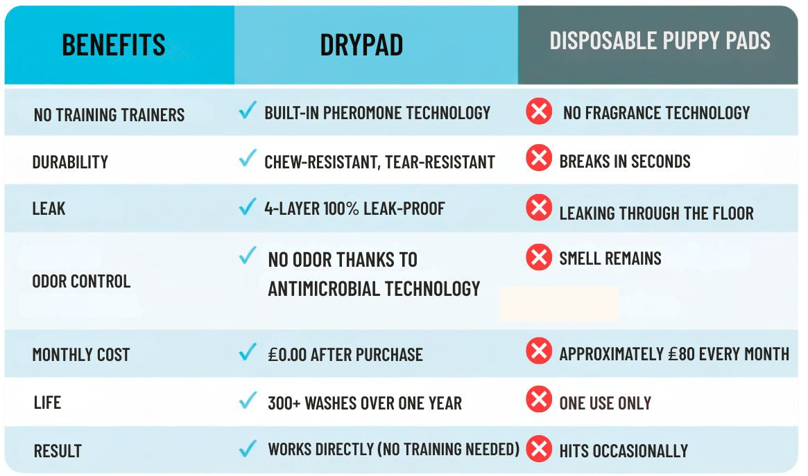 Disposable pee pads VS our DryPad
