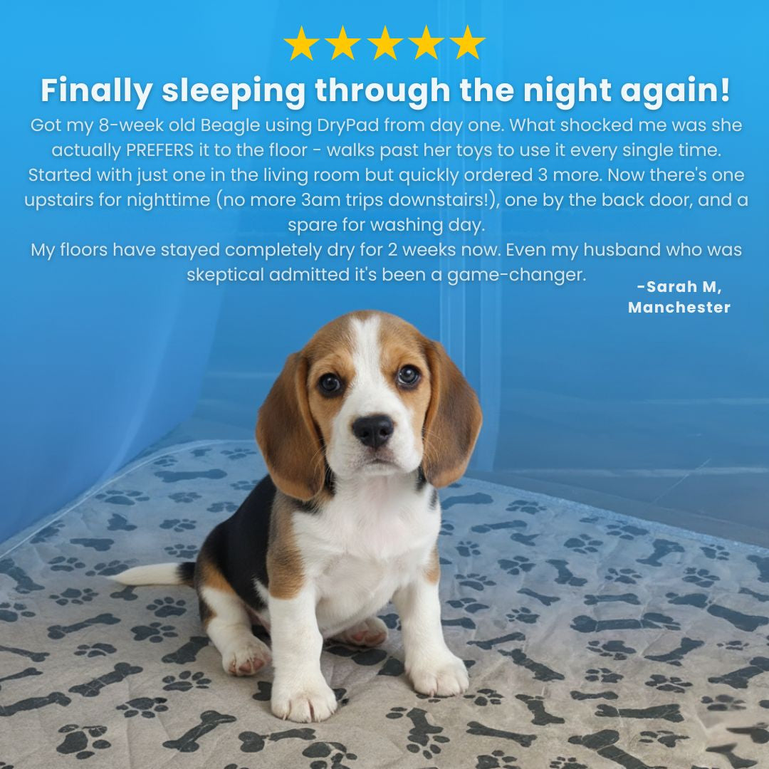 Got my first DryPad in September when we brought home our Cockapoo puppy. Honestly wasn't expecting much but after wasting £60 on disposable pads that Bella just tore up, I was desperate. She actually uses this one! Goes straight to it every morning. I wash it twice a week (takes 2 minutes to chuck in the machine) and it still looks brand new after 3 months. My sister keeps asking where I got it because her Lab puppy is destroying her house.